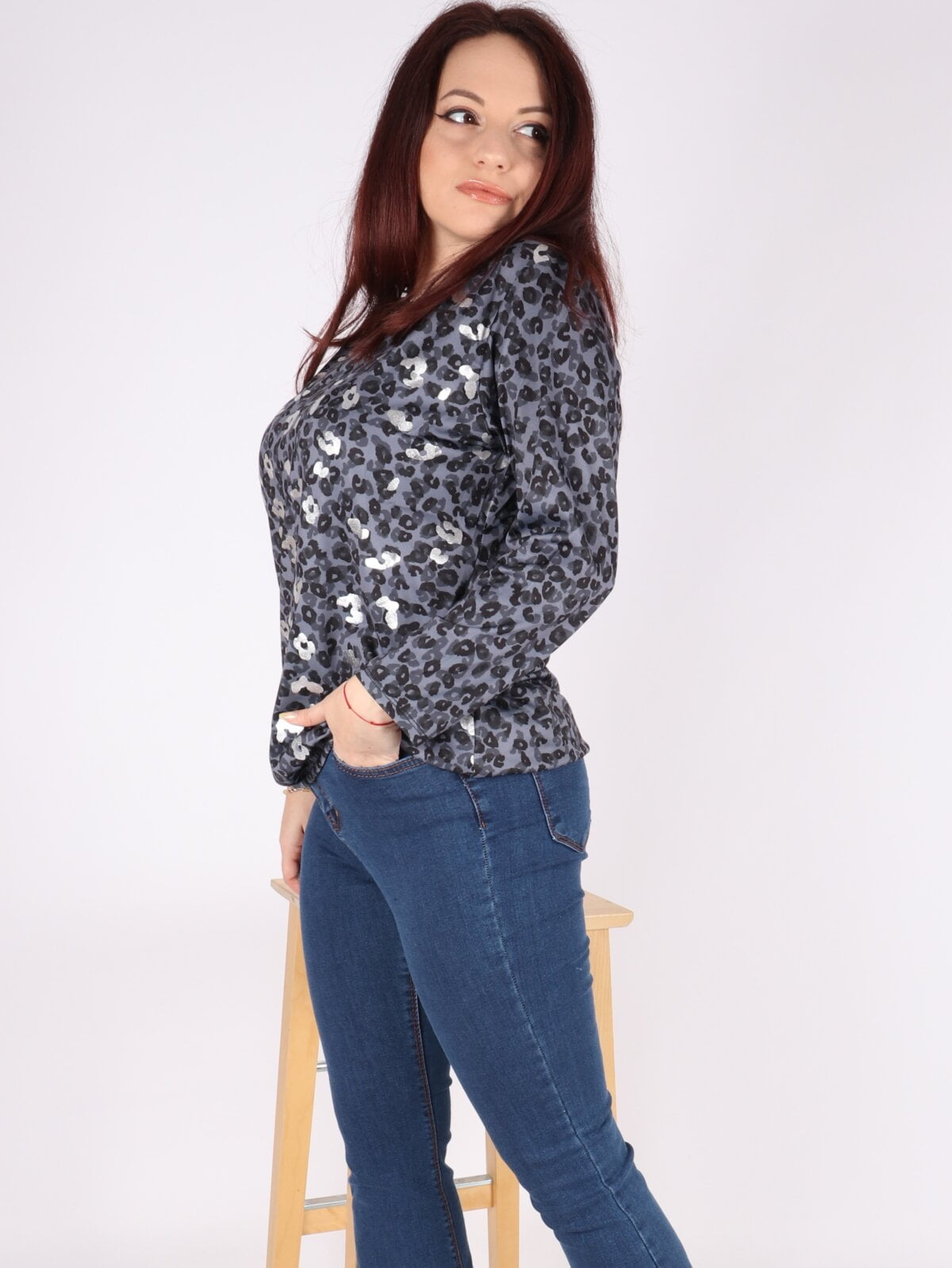 Bluza dama cu print abstract. Modelul prezinta guler rotund. Croiala este lejera si avantajeaza silueta. Nu intra la apa si nu iese culoarea. Materialul este din 96%Vascoza,4%elastan, astfel permite intindere si este foarte placuta la atingere.