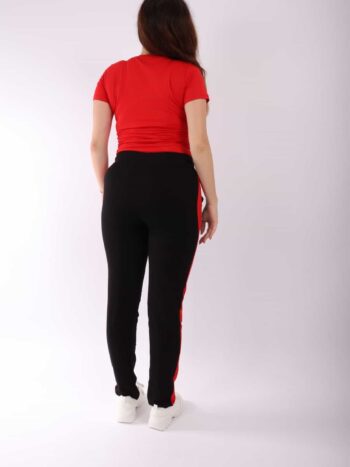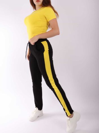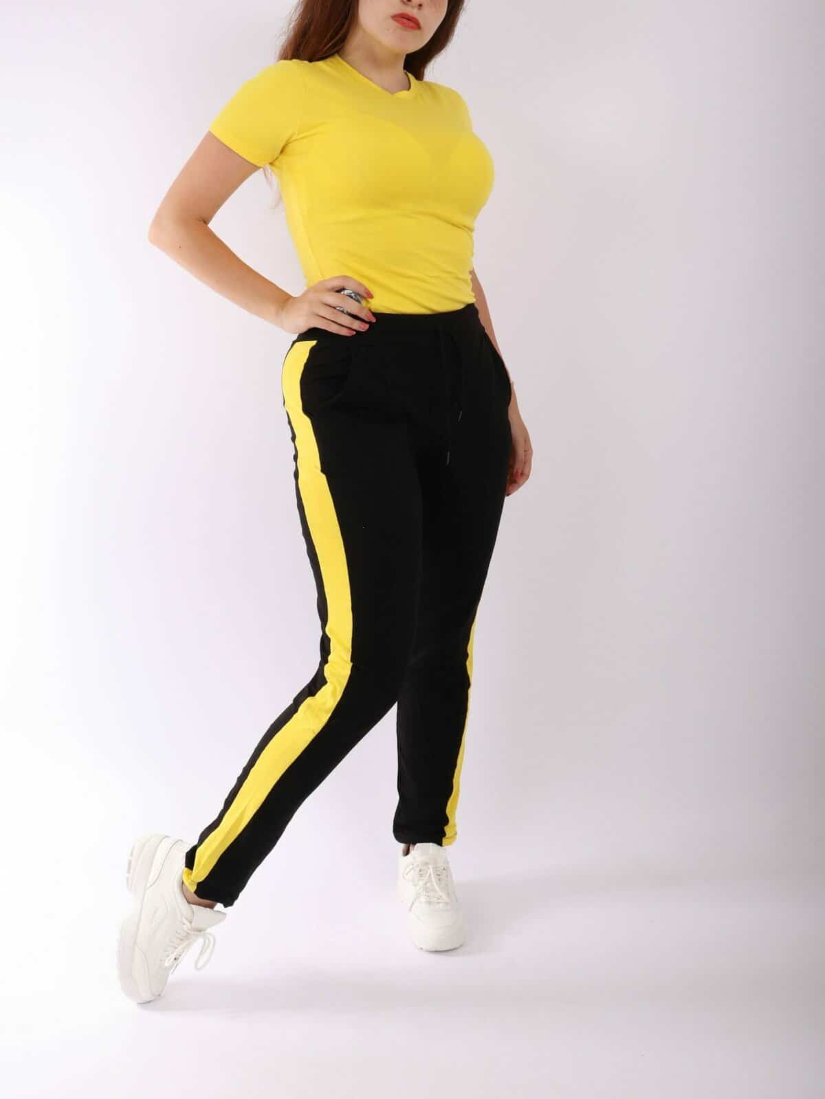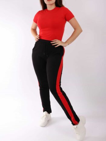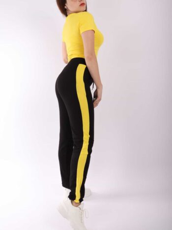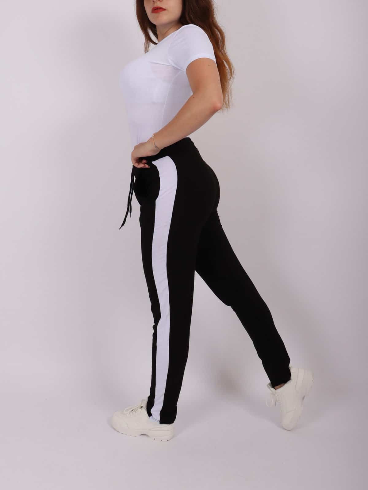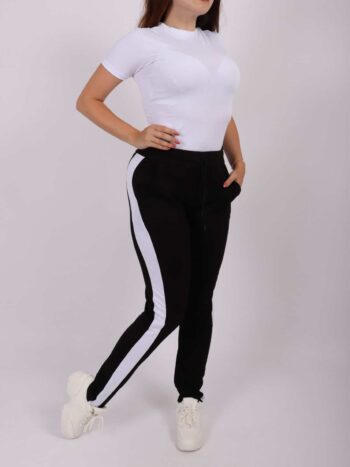 Compleu dama din doua piese. Modelul prezinta body cu inchidere prin capse si pantaloni cu siret si elastic in talie. Dungi laterale. Materialul contine:100%bumbac. Se recomanda spalare la masina la 30 grade, de preferat spalare manuala. ! Nu iese culoarea, materialul nu intra la apa! Materialul este foarte placut la atingere si permite intindere!