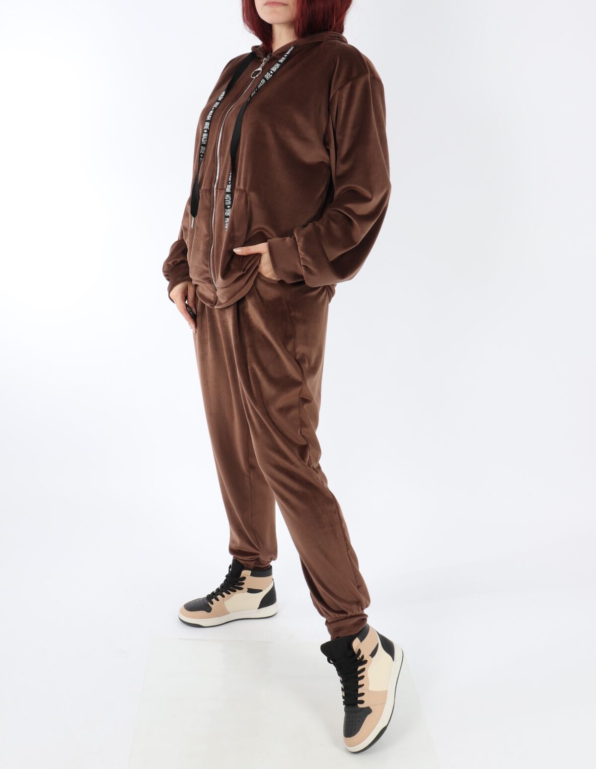 Compleu trening catifea pufoasa. Modelul prezinta bluza cu gluga si pantaloni cu elastic in talie. Materialul este foarte placut la atingere si permite intindere. Se recomanda spalare la masina nu mai mult de 30 grade, de preferat spalare manuala ! Nu iese culoarea, materialul nu intra la apa!