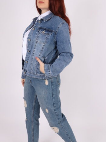 Jacheta jeans copii. Modelul prezinta croiala dreapta, buzunare si inchidere prin nasturi. Se recomanda spalare la masina la 30 grade, de preferat spalare manuala. ! Nu iese culoarea, materialul nu intra la apa! Materialul este foarte placut la atingere!
