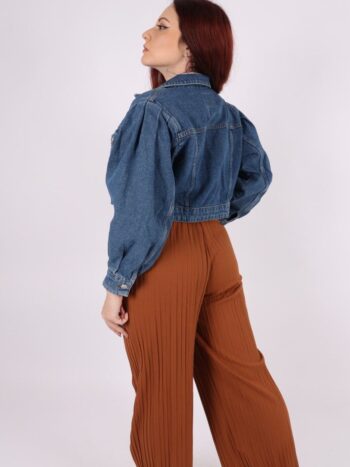 Jacheta jeans dama cu maneci bufante. Modelul prezinta croiala dreapta, buzunare si inchidere prin nasturi. Se recomanda spalare la masina la 30 grade, de preferat spalare manuala. ! Nu iese culoarea, materialul nu intra la apa! Materialul este foarte placut la atingere!