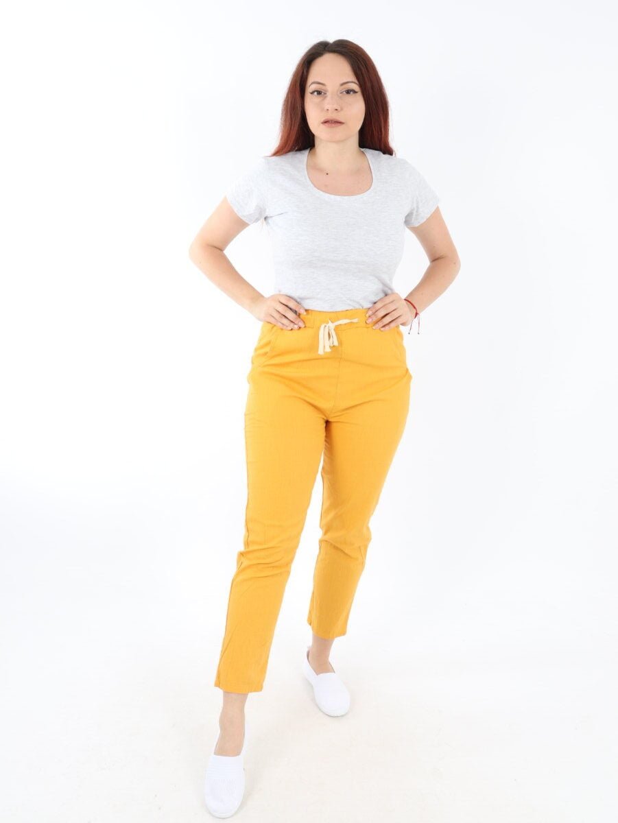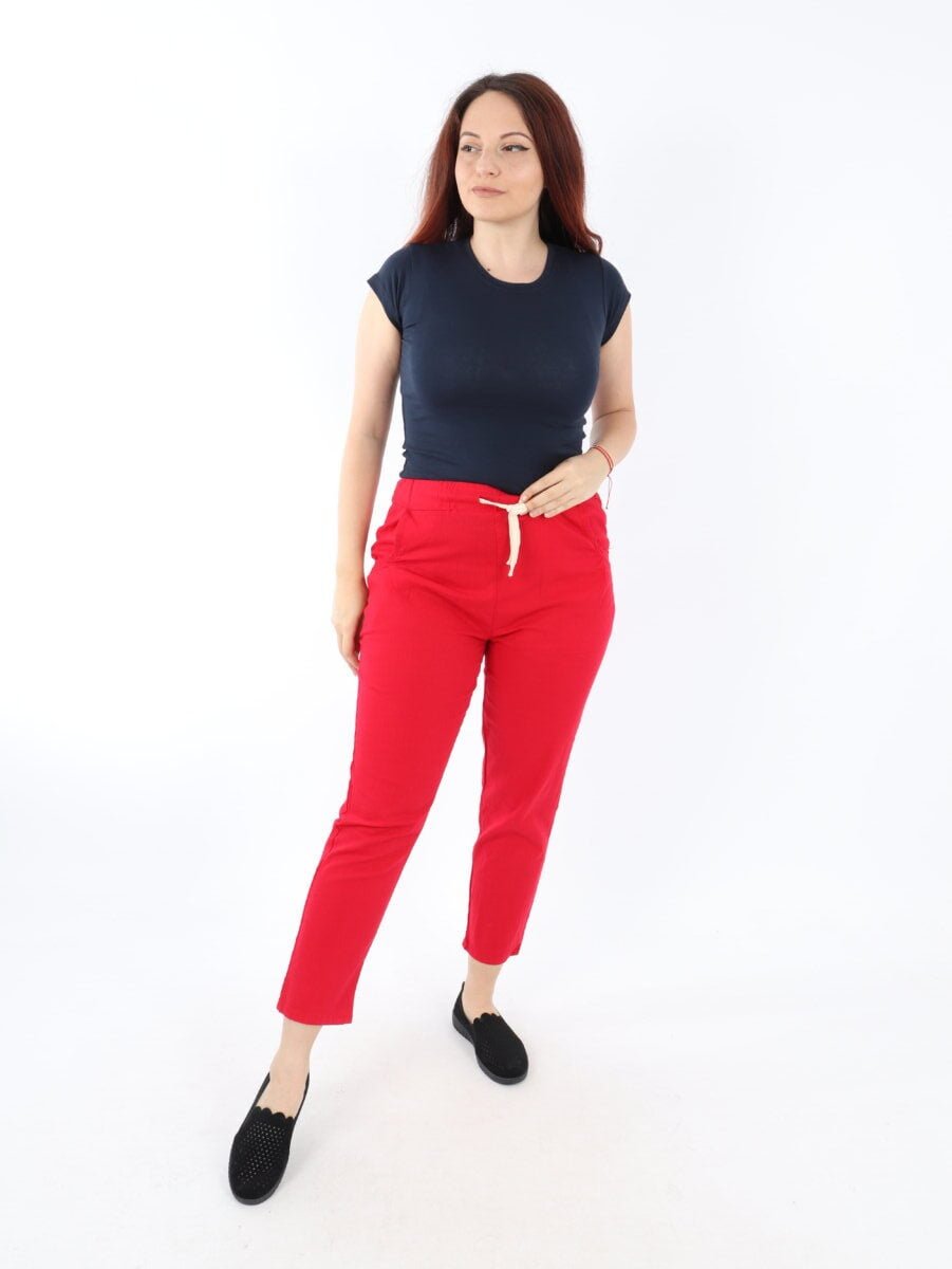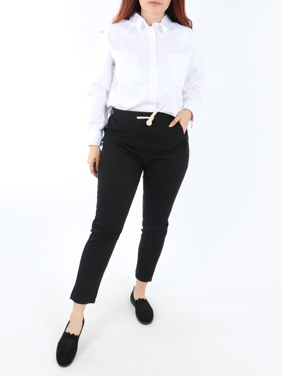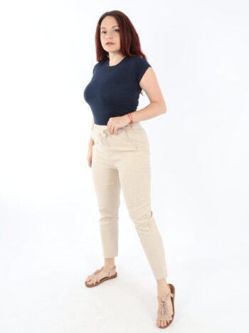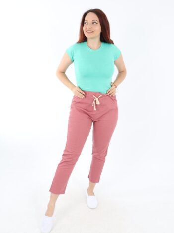 Pantaloni dama casual cu snur reglabil. Modelul prezinta buzunare si elastic in talie. Croiala avantajeaza silueta. Se recomanda spalarea la masina la 30 grade! Nu intra la apa si nu iese culoarea din material! Materialul contine: 98%bumbac si 2%spandex, astfel sunt foarte placuti la atingere.