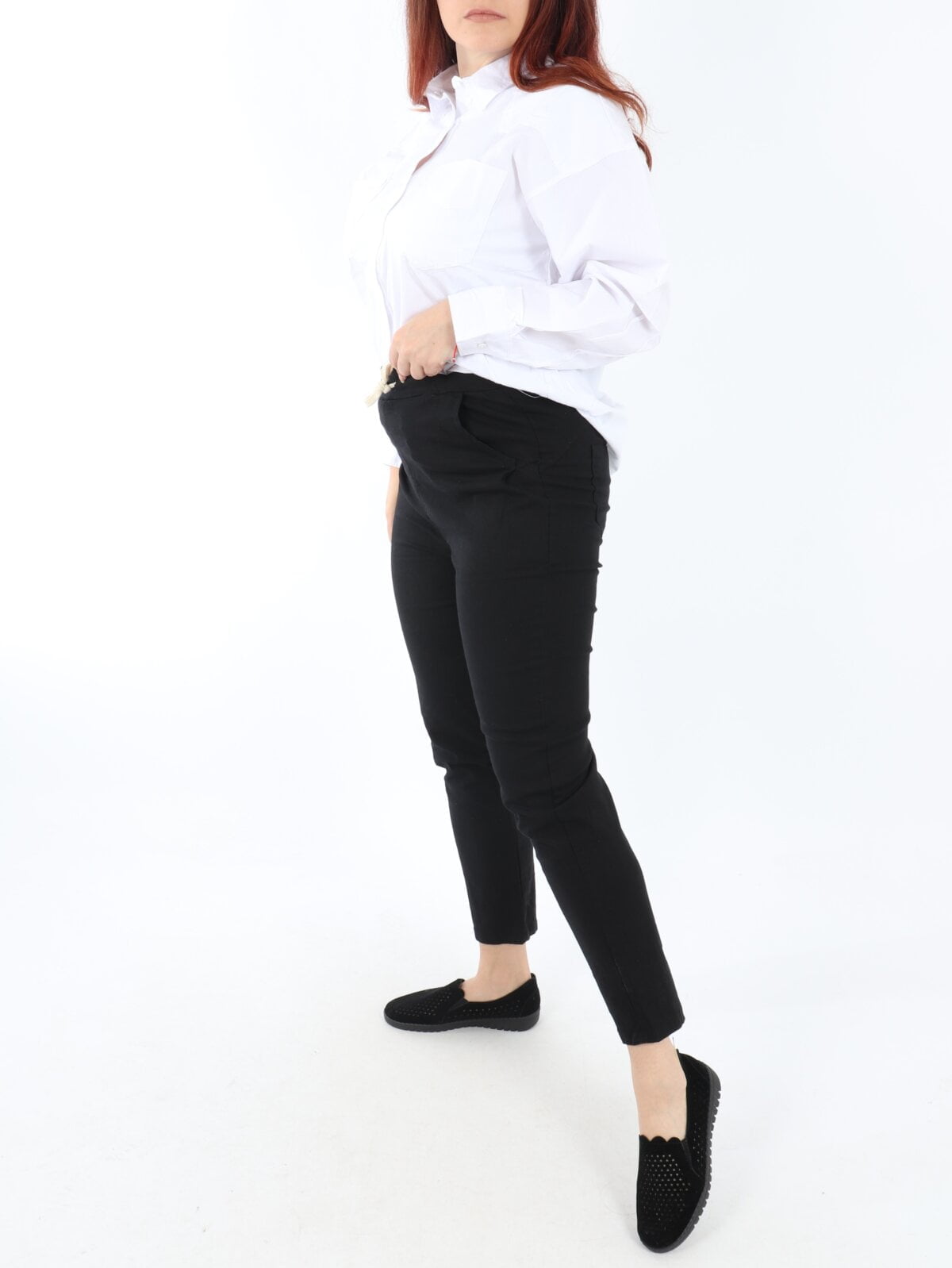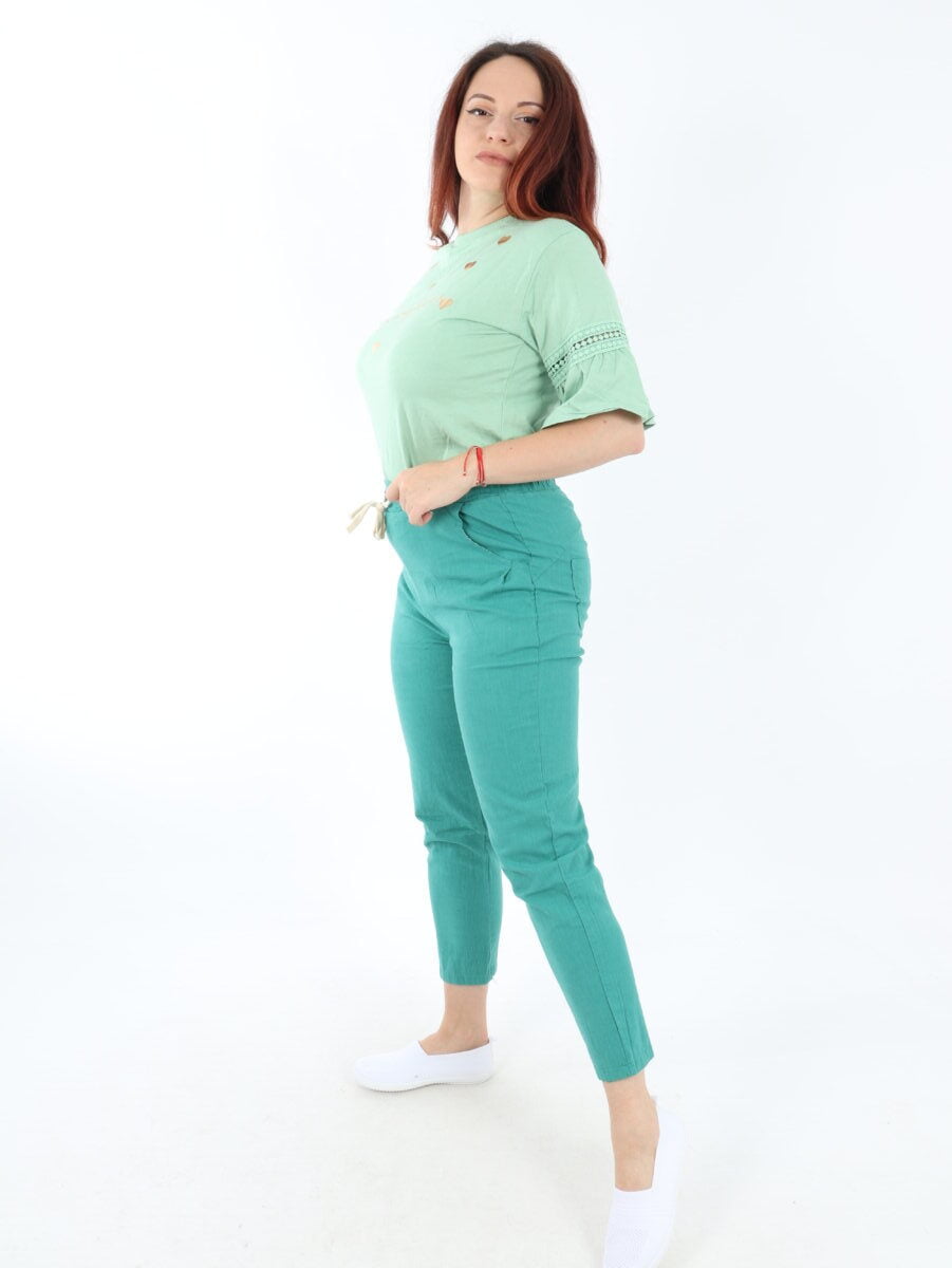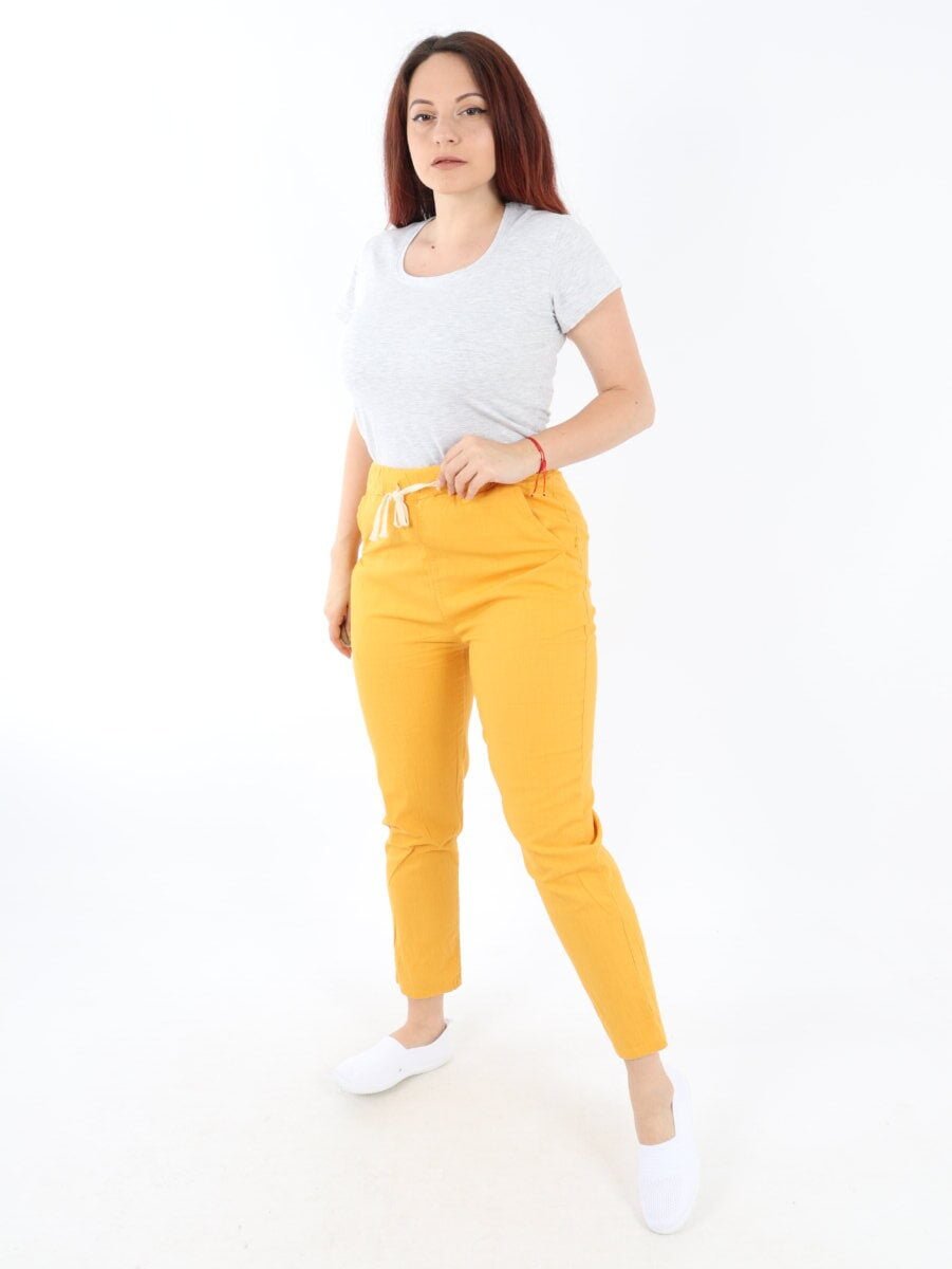 Pantaloni dama casual cu snur reglabil. Modelul prezinta buzunare si elastic in talie. Croiala avantajeaza silueta. Se recomanda spalarea la masina la 30 grade! Nu intra la apa si nu iese culoarea din material! Materialul contine: 98%bumbac si 2%spandex, astfel sunt foarte placuti la atingere.