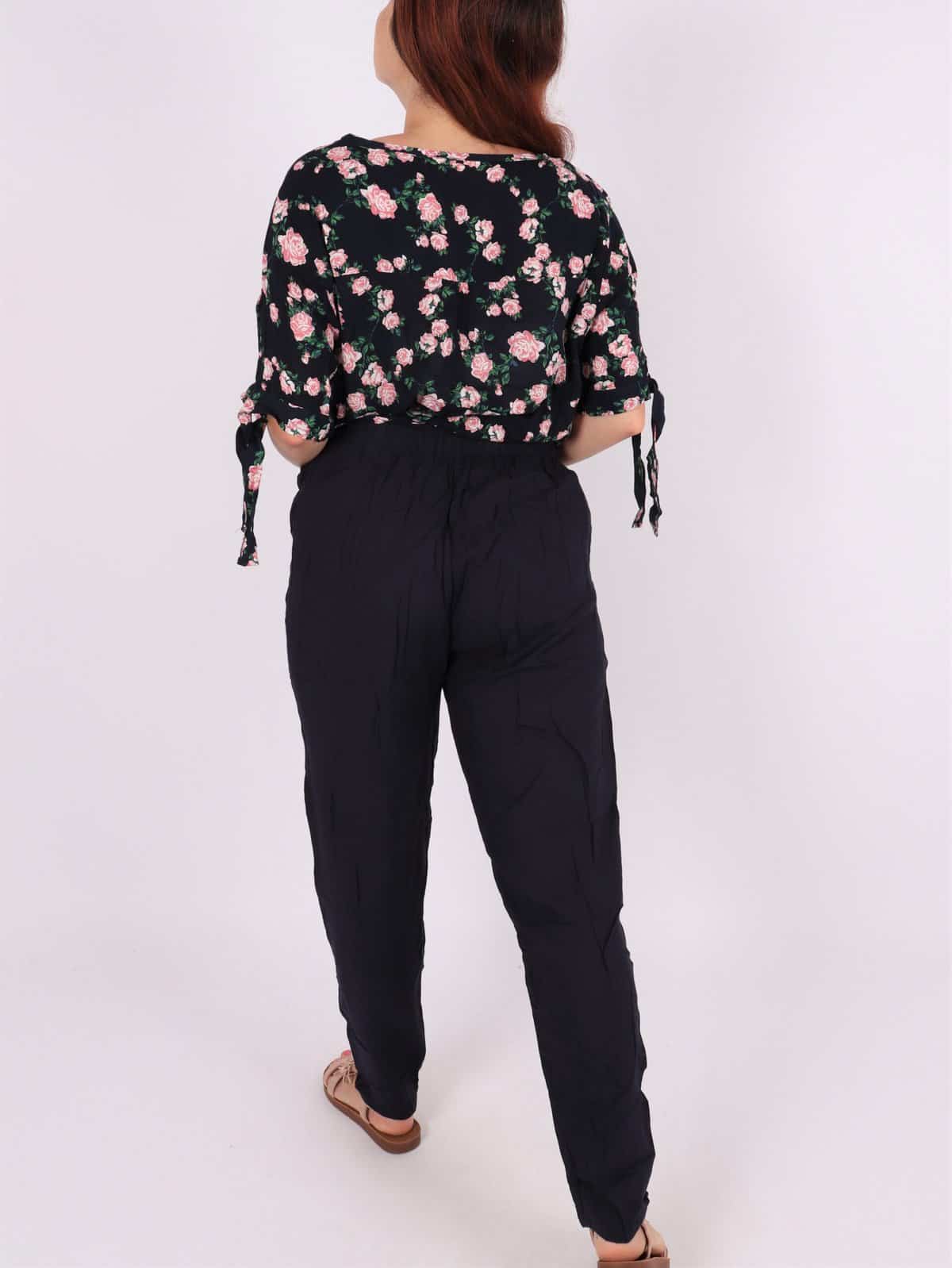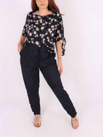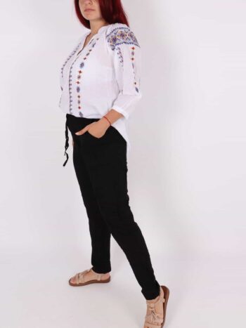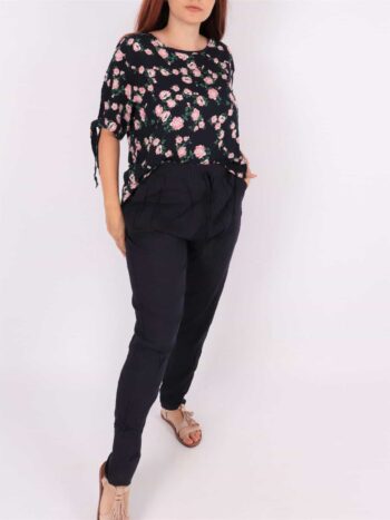 Pantaloni dama de vara lejeri. Modelul prezinta croiala lejera, buzunare, siret reglabil in talie si elastic. Materialul contine: 100%bumbac. Se recomanda spalare la masina la 30 grade! Nu iese culoarea din material, nu intra la apa!