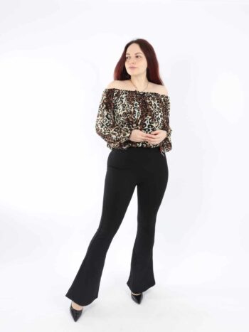 Pantaloni dama evazati. Modelul prezinta elastic in talie si croiala ce contureaza silueta. Materialul contine: 65%vascoza,30%poliester,5%elastan, astfel permite intindere si este foarte placut la atingere. Nu intra la apa si nu iese culoarea din material. Se recomanda spalarea la 30 grade, de preferat spalarea manuala!