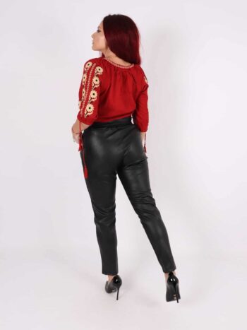 Pantaloni dama din piele ecologica cu cordon in talie. Modelul prezinta elastic in talie si buzunare. Se recomanda spalare la masina la 30 grade, de preferat spalare manuala. ! Nu iese culoarea, materialul nu intra la apa! Materialul este foarte placut la atingere!