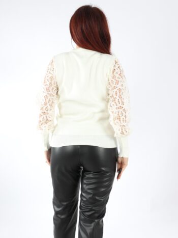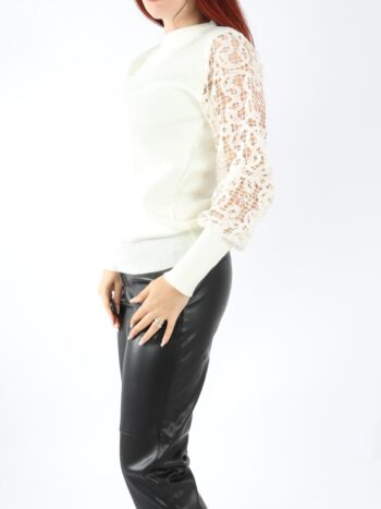 Modelul prezinta maneca lunga, guler si croiala lejera.