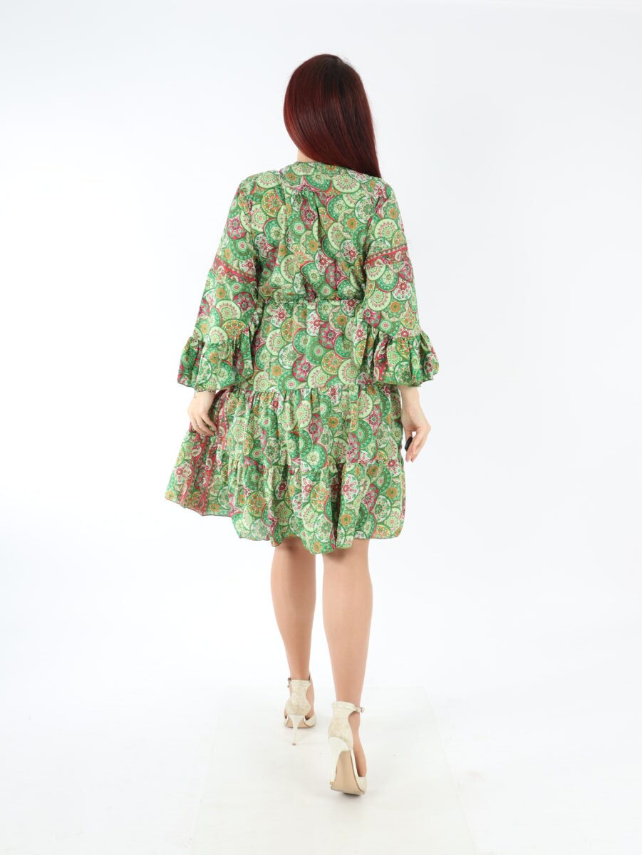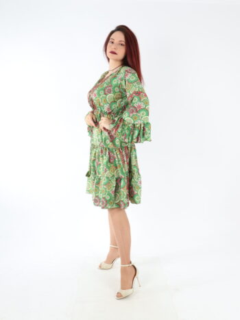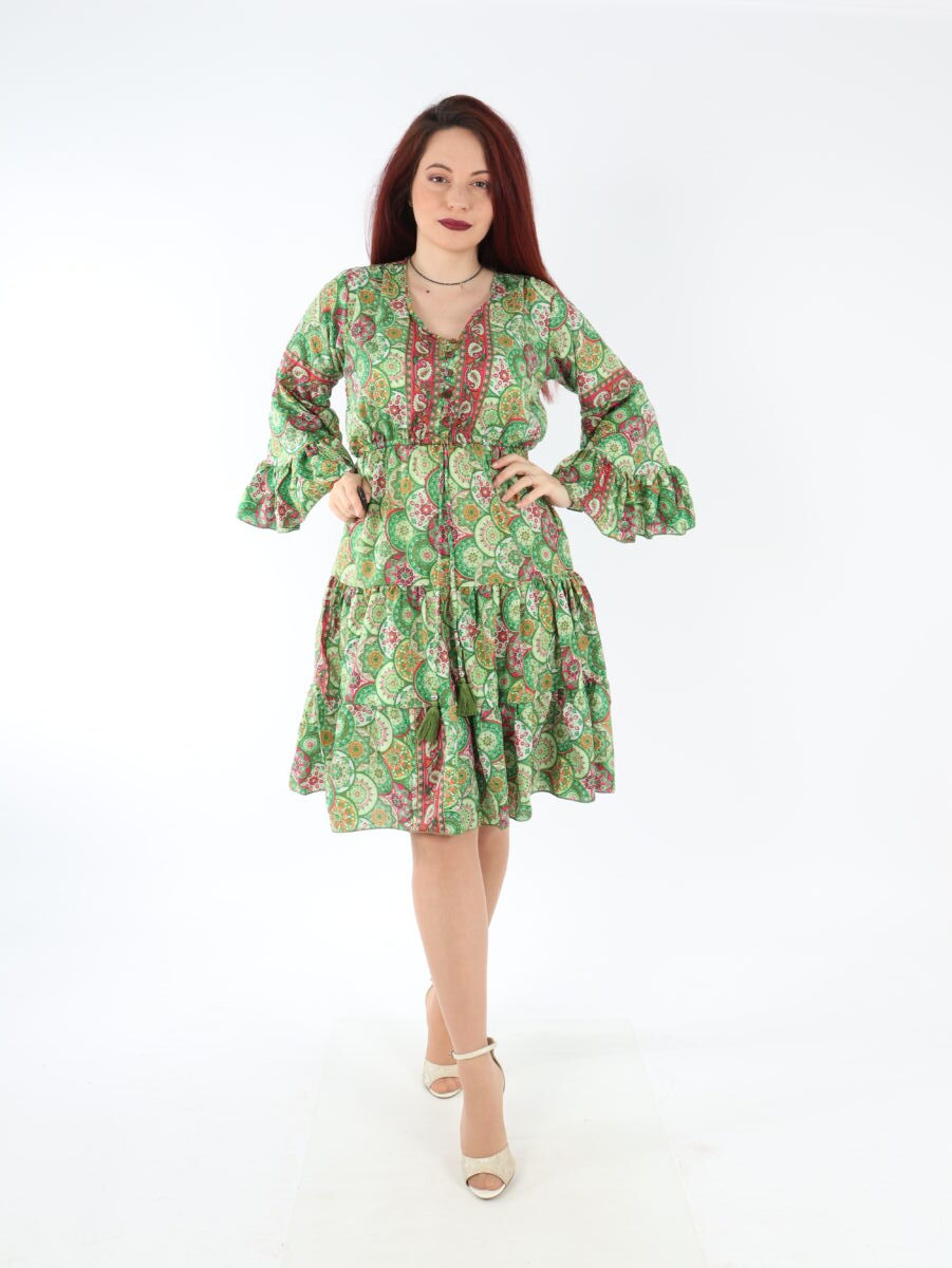 Tabel de măsuriRochie de dama cu print boho, siret in talie si volanase.