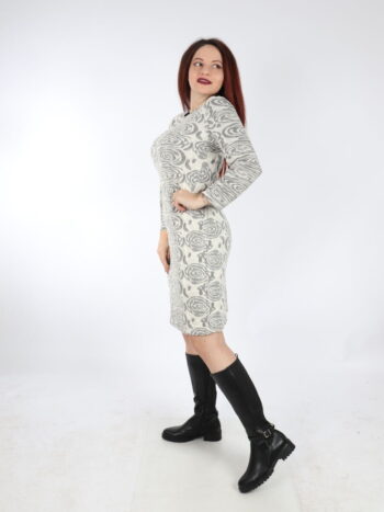 Rochie dama stil office. Modelul prezinta croiala dreapta, decolteu rotund si inchidere prin fermoar la spate.