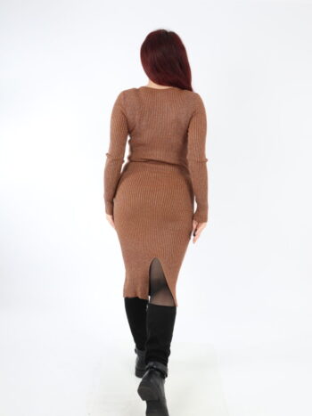 Croiala pe corp, maneca lunga si decolteu in „V”. Material:30%lana, 20%seda, 20%bumbac, 10%casmir, 10%poliester, 10%spandex