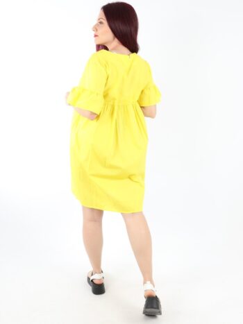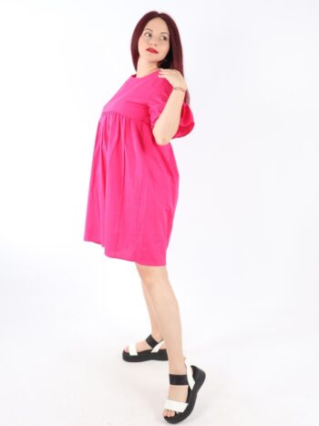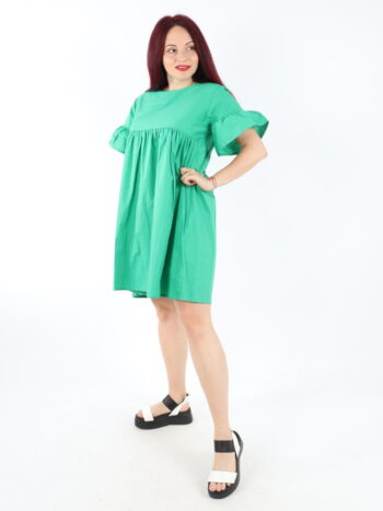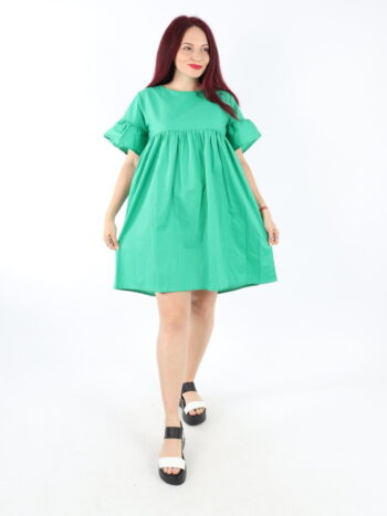 Rochie dama scurta de vara cu volanase. Modelul prezinta maneca trei-sferturi si elastic in talie. Materialul este foarte placut la atingere. Se recomanda spalare la masina la 30 grade, de preferat spalare manuala. ! Nu iese culoarea, materialul nu intra la apa!