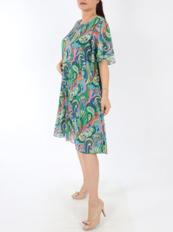 Rochie de vara dama midi cu pliseuri si print colorat.