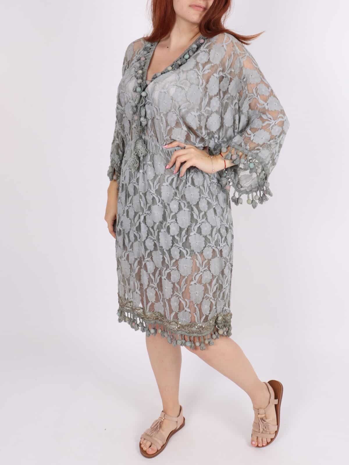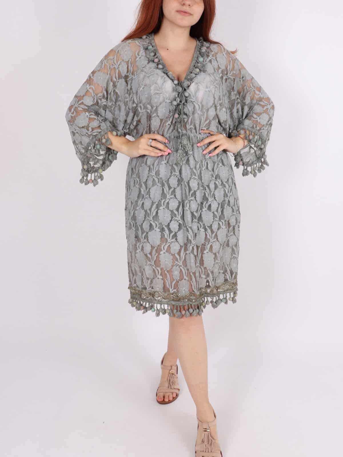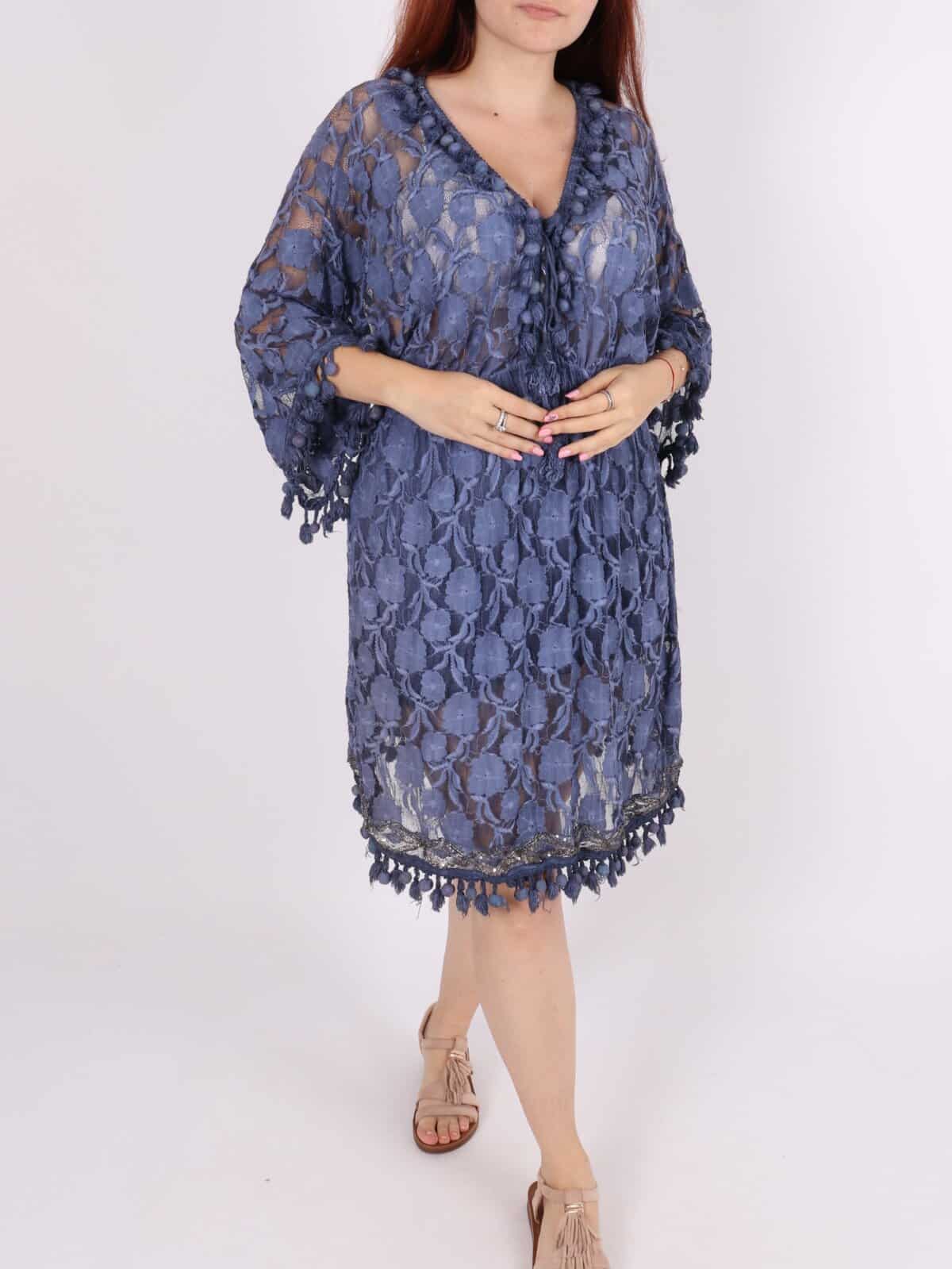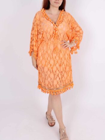 Rochie de vara cu ciucuri si decolteu in „V”. Modelul este prevazut cu dublura si elastic in talie. Se recomanda spalare la masina nu mai mult de 30 grade, de preferat spalare manuala. ! Nu iese culoarea din broderie, materialul nu intra la apa!
