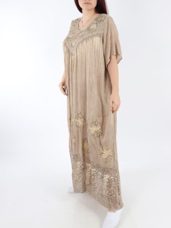 Rochia este prevazuta cu un decolteu rotund si maneca scurta. Aceasta are un design bogat in broderii si este realizata cu materiale de cea mai inalta calitate pentru a oferi o durabilitate fara compromis.