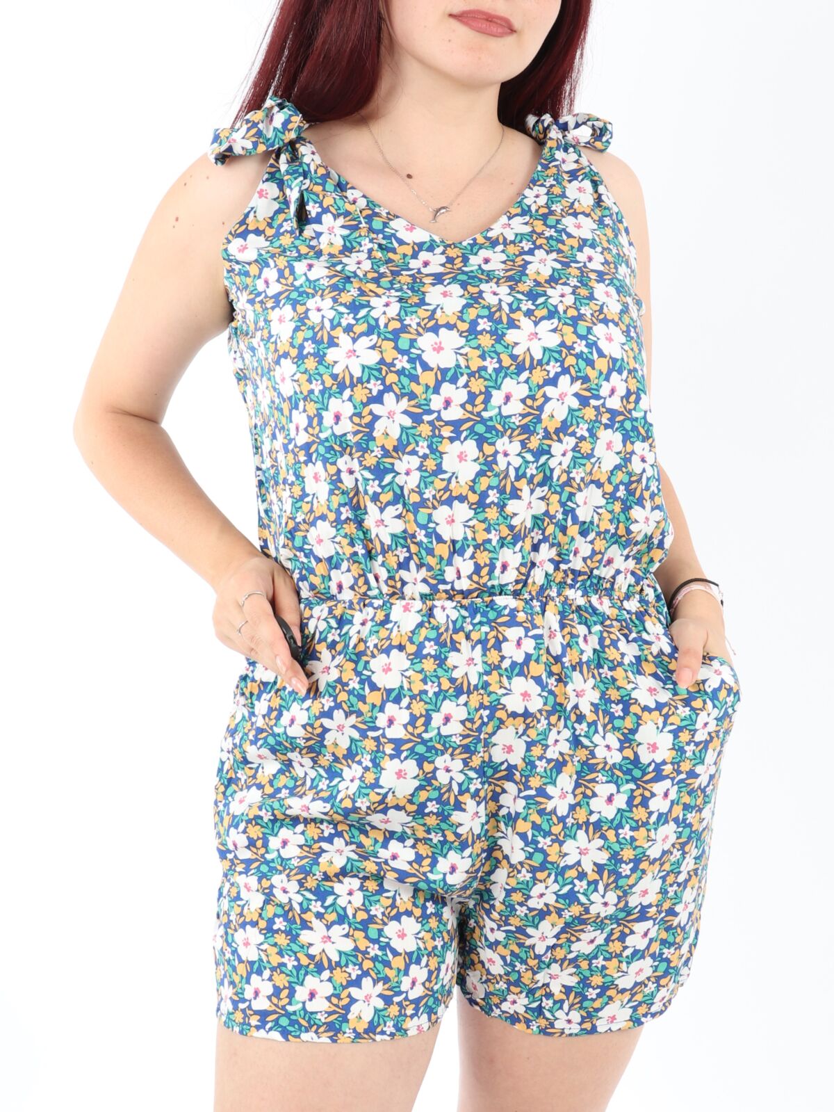 Salopeta dama de vara cu print floral, colorat si buzunare.