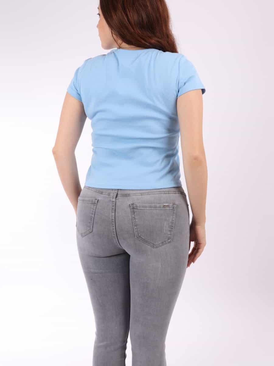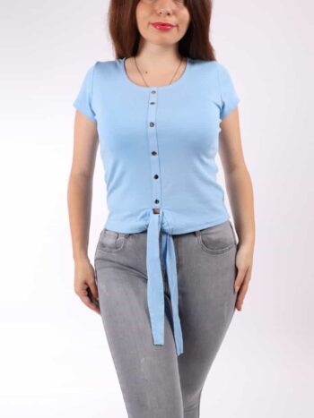 Tricou dama cu capse si funde. Modelul prezinta croiala dreapta, decolteu rotund si maneca scurta. Se recomanda spalare la masina la 30 grade, de preferat spalare manuala. ! Nu iese culoarea, materialul nu intra la apa! Materialul este foarte placut la atingere si permite intindere! Disponibil in diferite culori! Materialul contine:95%bumbac,5%elastan
