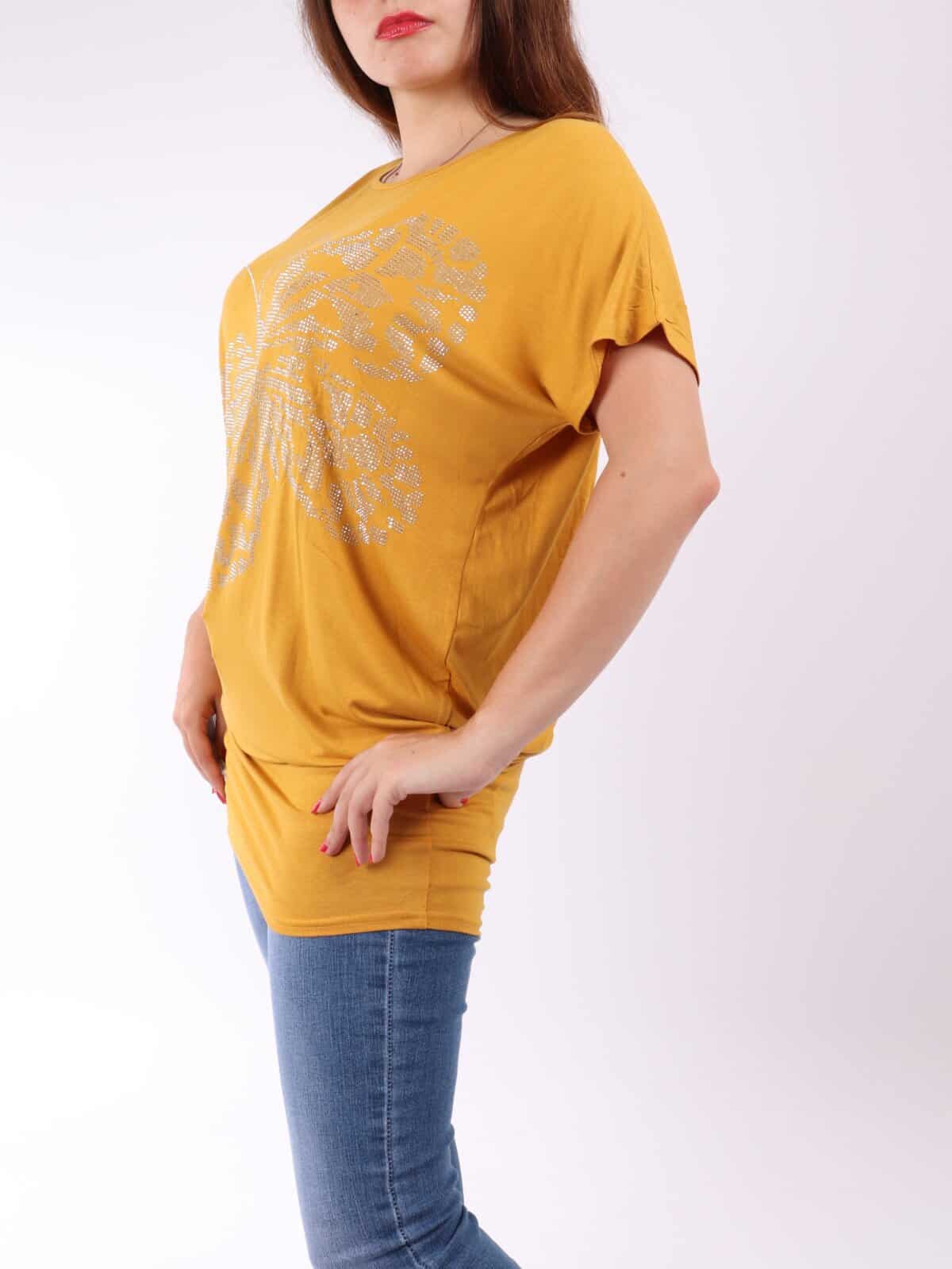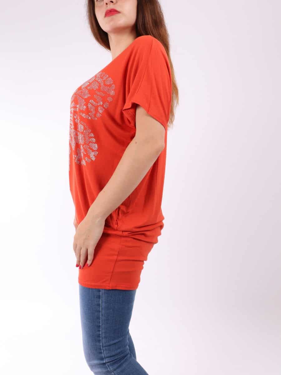 Tricou dama lung cu strasuri. Modelul prezinta croiala lejera, decolteu in rotund si strasuri. Se recomanda spalare la masina la 30 grade, de preferat spalare manuala. ! Nu iese culoarea, materialul nu intra la apa! Materialul este foarte placut la atingere si permite intindere! Disponibil in diferite culori! Materialul contine:100%bumbac