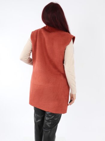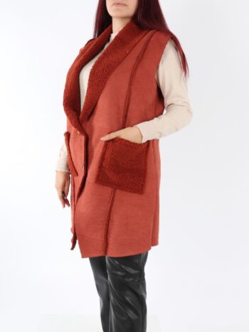 Model din piele intoarsa cu guler rever si buzunare. Modelul este foarte placut la atingere si permite intindere.
