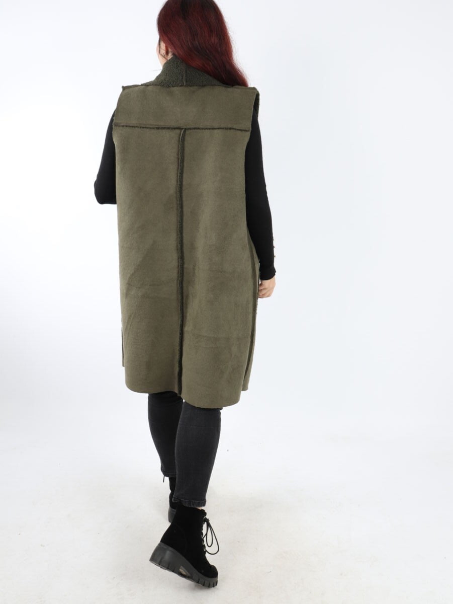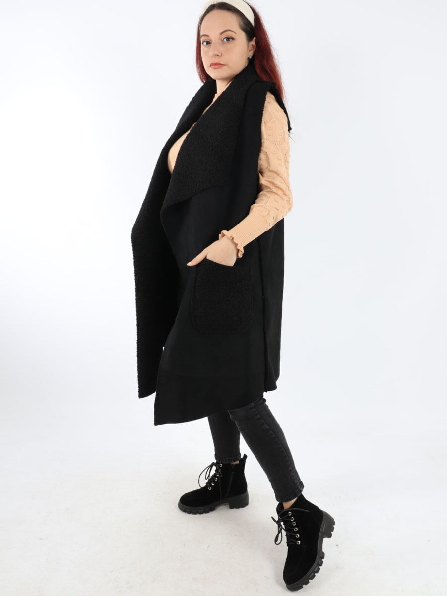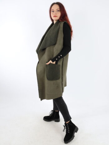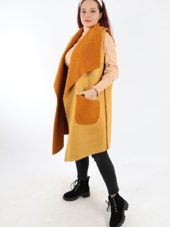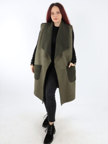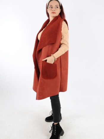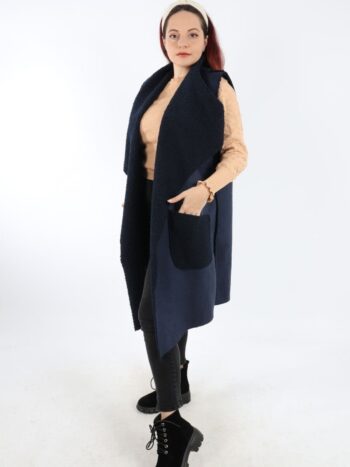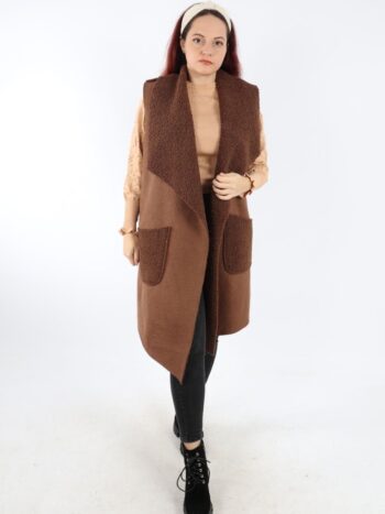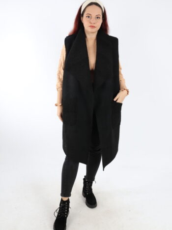 Vesta dama lunga cu blanita. Model din piele intoarsa cu guler rever si buzunare. Modelul este foarte placut la atingere. Se recomanda spalare la masina la 30 grade, de preferat spalare manuala. ! Nu iese culoarea, materialul nu intra la apa!