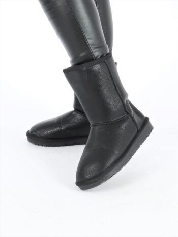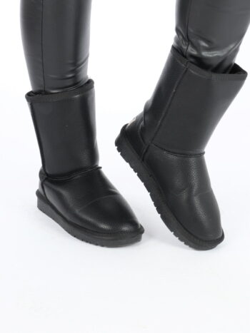 Cizme dama imblanite din piele ecologica. Modelul este prevazut cu talpa flexibila. Acest model este foarte comod si calduros, recomandat pentru zilele friguroase de iarna. Nu intra la apa si nu iese culoarea din material. Culori disponibile: negru