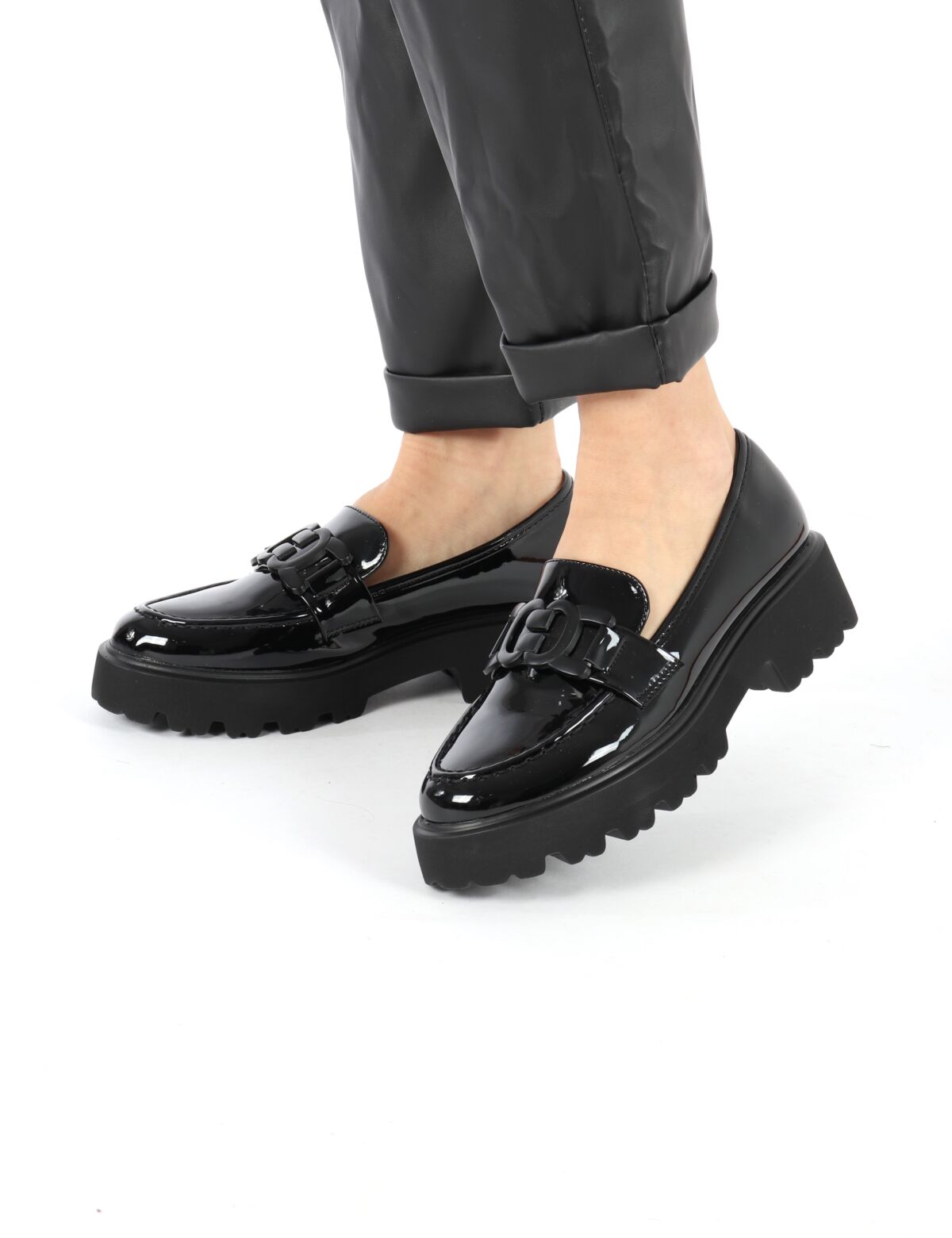 Pantofi dama office din piele ecologica lacuita.