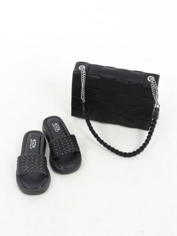 Sandale dama stil papuc din piele eco cu varf decupat .