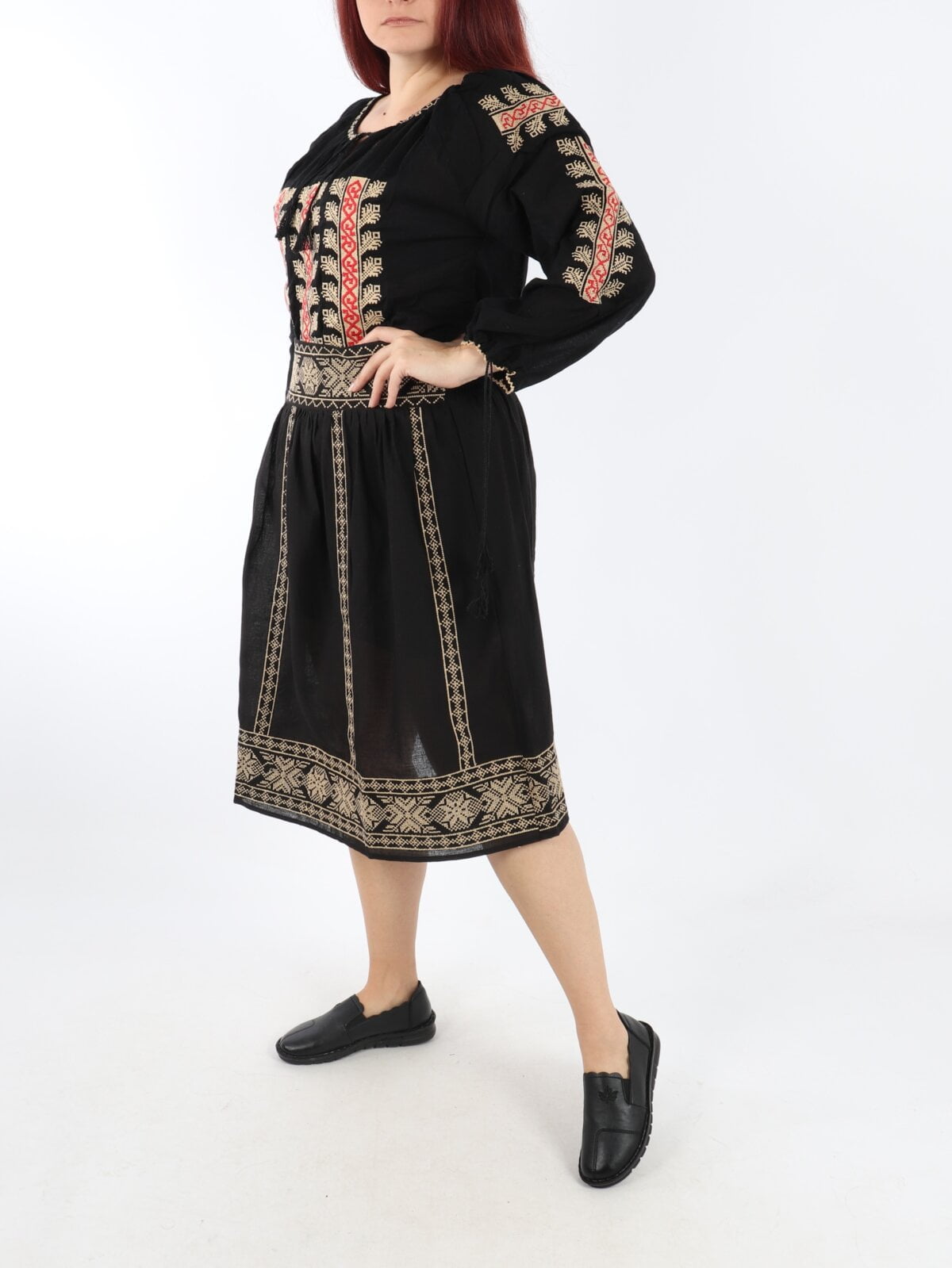 Fusta dama traditionala cu brau elastic. Broderie colorata cusuta la masina. Croiala conica. Modelul prezinta elastic in talie si dublura din panza de bumbac. Se recomanda spalare la masina nu mai mult de 30 grade, de preferat spalare manuala ! Nu iese culoarea din broderie, materialul nu intra la apa! Material:100% bumbac