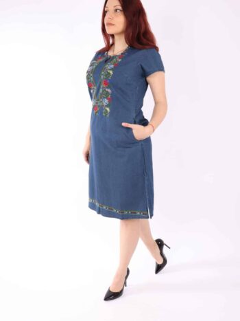 Rochie deosebita din jeans cu broderie florala. Ideala pentru zilele calduroase de vara dar si pentru cele mai friguroase. Poate fi purtata vara cu Sandale sau iarna cu cizme. Indiferent de cum o vei purta rochita te face sa te simti minunat! Nu intra la apa si nu iese culoarea din material! Se recomanda spalarea la 30 de grade, de preferat manuala!