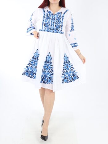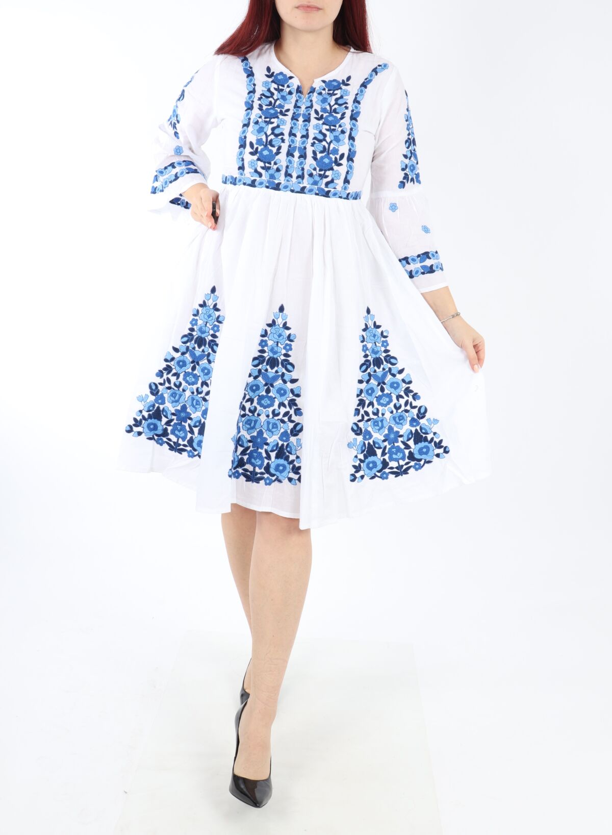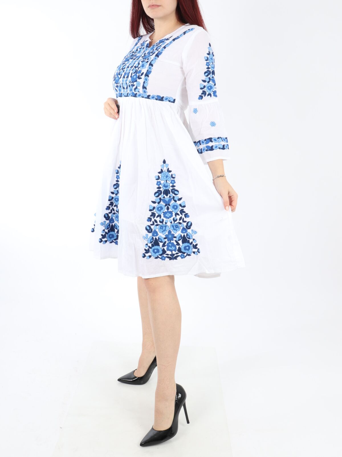 Material: bumbac 100%, captusala din bumbac la interior, broderie cusuta la masina. Rochie lejera la purtat.